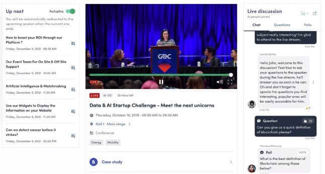 In between chatting with fellow attendees you'll have access to a central hub on the platform that makes it easy to see what sessions are being broadcast when. If you can't attend a given talk due to life reasons, or you're just double-booked, don't worry; GDC Summer talks will all be viewable on demand in the platform, shortly after they're broadcast.